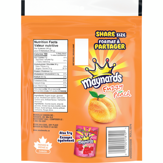 Maynards Fuzzy Peach Gummy Candy 308g